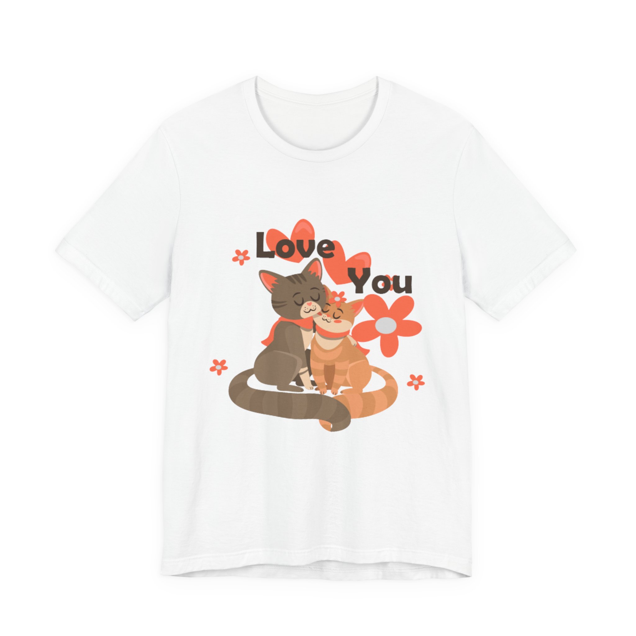 Love You Cute Cats T-Shirt — Cat Couple Floral Graphic Tee ,T-shirts that are soft, breathable, warm, and feature a cheerful print.